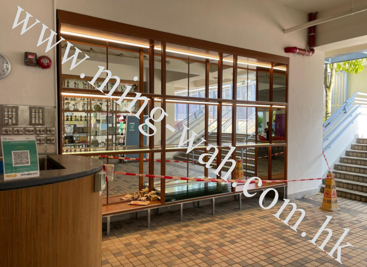 二. 右側封10mm厚透明強化玻璃外有1.2mm厚鏡板摺L槽12x12mm內有10x10mm鏡鋼方通夾住玻璃