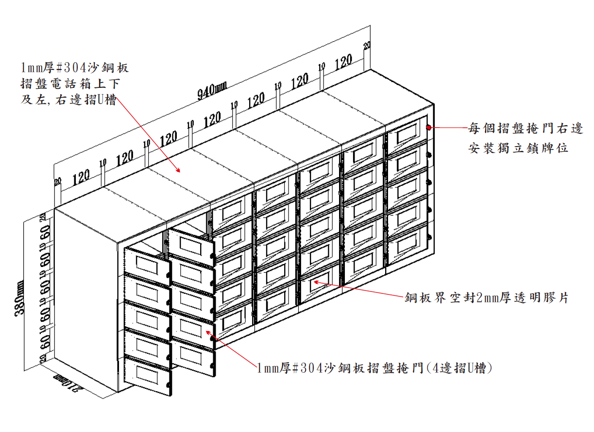 二. 每個摺盤掩門右邊安裝獨立鎖牌位