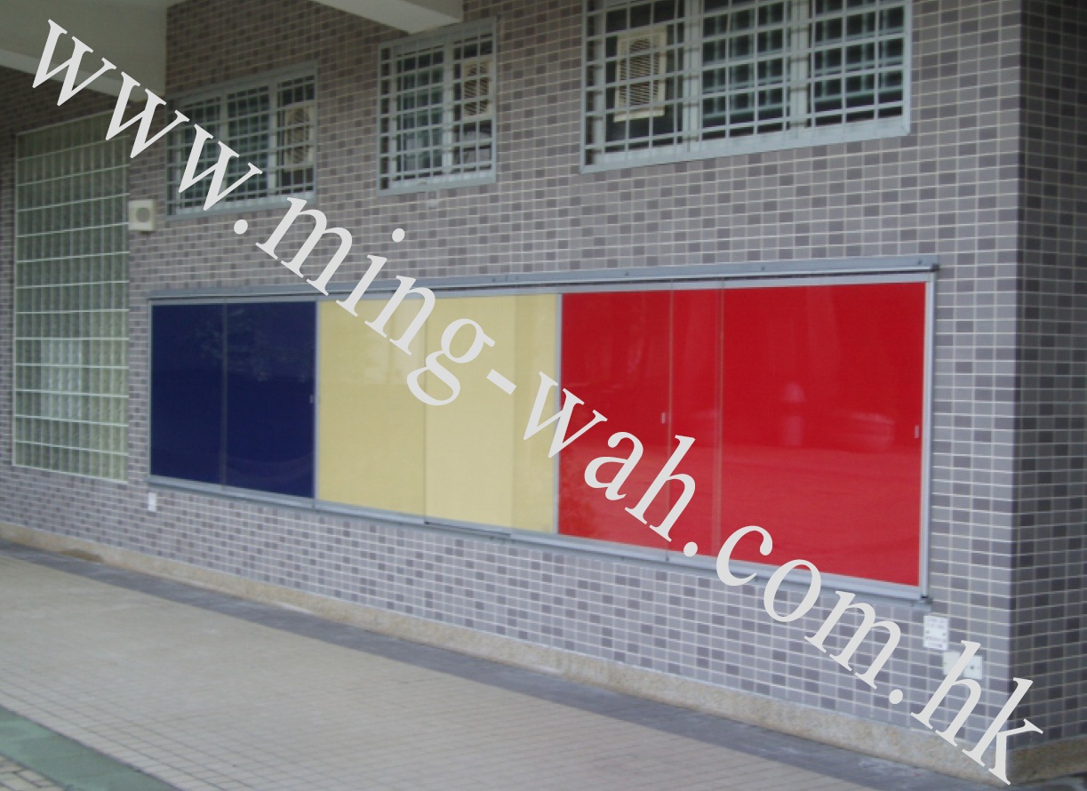 或貼白磁/綠磁板,外框四角有防撞膠角