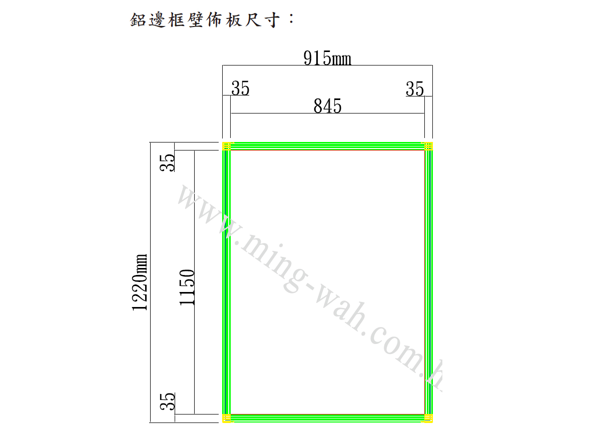 一. 外框35mm闊x25mm厚鋁邊框內5mm厚木板貼