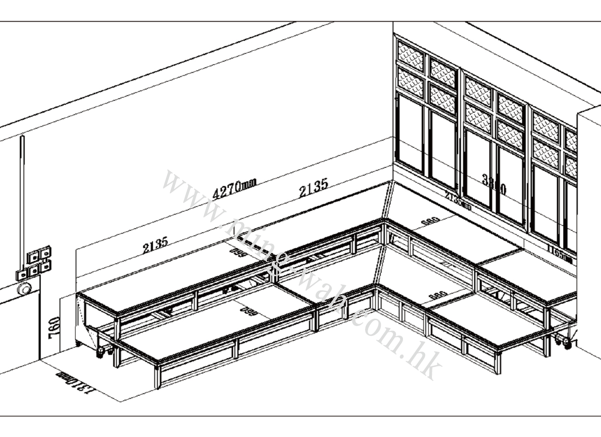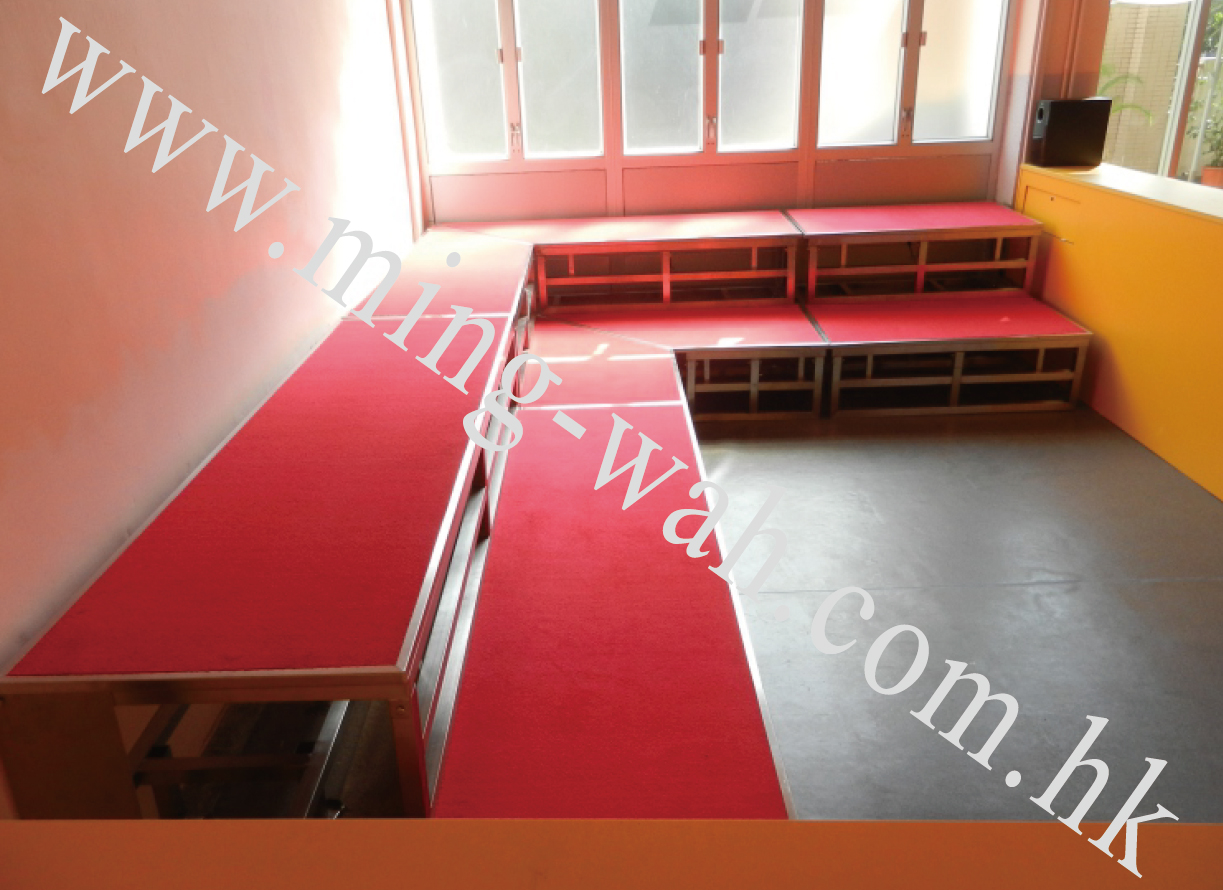 二. 梯級面鋪20mm厚木板面舖(鮮紅色地毯編號:L-17)
